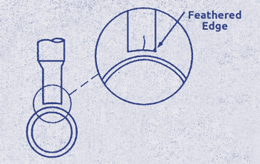 Be aware that the two feathered edges are prone to breakage, and wear prematurely. In more severe applications, the feathered edges of a convex shear will chip and the punch may split up the middle.